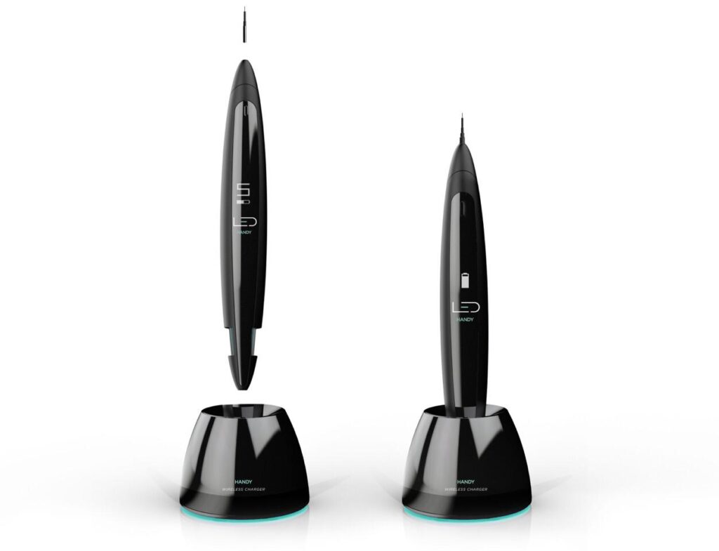 Le dimensioni ridotte e il peso contenuto (< 100 g) del corpo del manipolo, rendono HANDY una virtuale estensione della mano del chirurgo. Il dispositivo è dotato di una batteria ricaricabile tramite stazione wireless: ciò consente la totale assenza di cavi e una maneggevolezza simile a quella di una comune penna per scrivere.