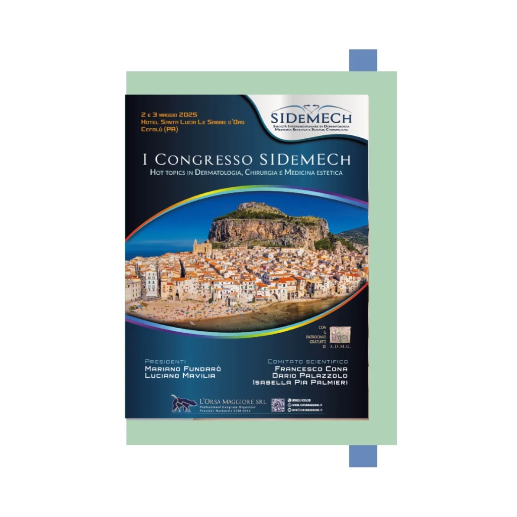 Il I° Congresso SIDeMECh – Hot topics in Dermatologia, Chirurgia e Medicina estetica ha come focus l’affrontare le tematiche più attuali della dermatologia, della medicina estetica e dei settori chirurgici affini approfondendo le terapie di più recente introduzione con l’obiettivo di dare una visione più ampia in un panorama multidisciplinare.